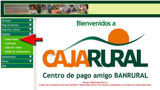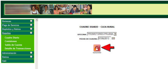 Pasos para generar el reporte de cuadre diario |