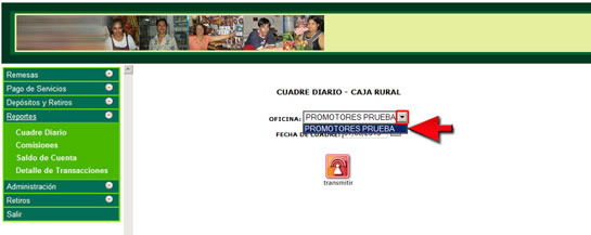 2. Seleccione la oficina que tiene asignada para realizar sus operaciones de Caja Rural.
