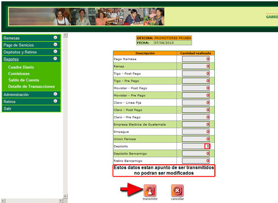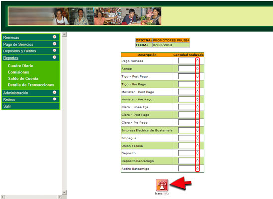 5. Ingrese el número de operaciones realizadas según corresponda en los espacios correspondientes y conforme los documentos de soporte de operaciones, luego presione el botón "Transmitir".