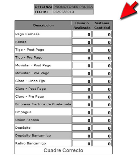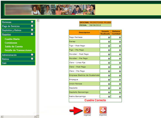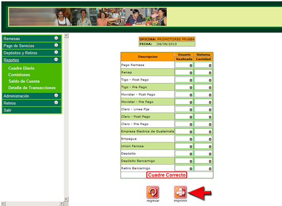 7. El sistema desplegara el mensaje de "Cuadre Correcto", luego presione el botón "Imprimir".