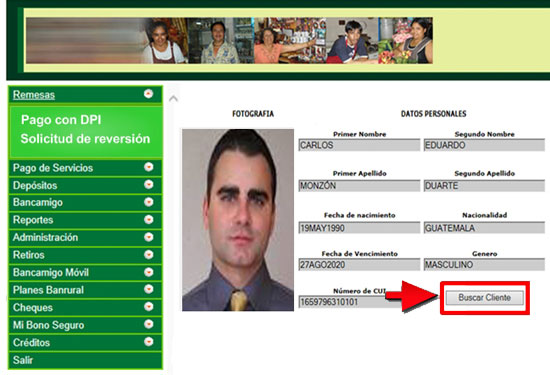 6. Ingrese el número de CUI, y presione el botón "Buscar Cliente".
