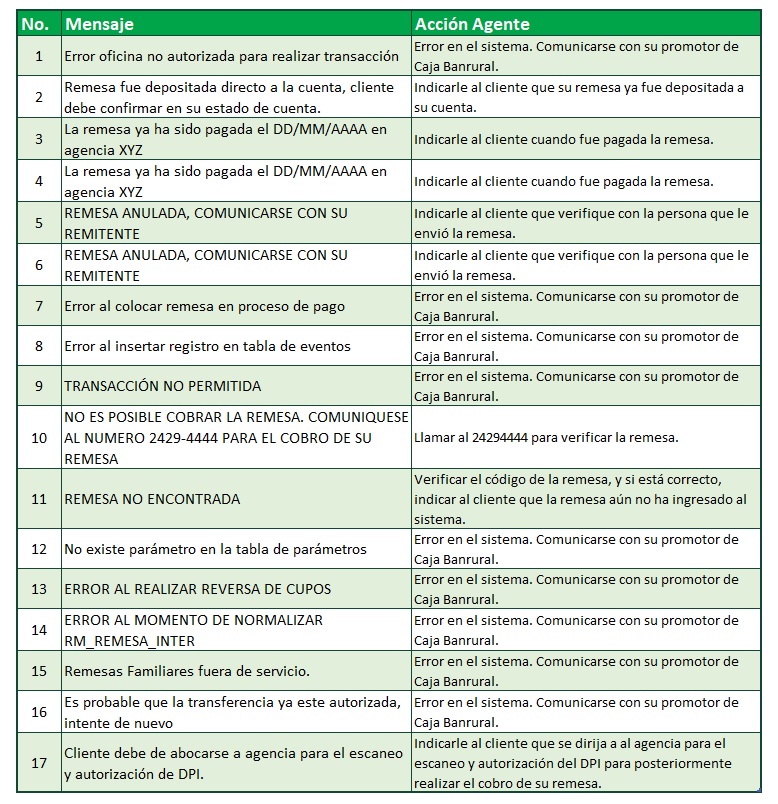 - Únicamente se realizará el pago de remesas en moneda Quetzales