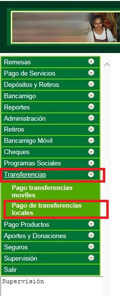 2. Seleccione el menú "Transferencias" opción "Pago de Transferencia Local".