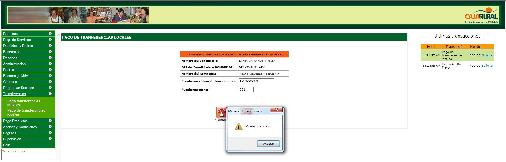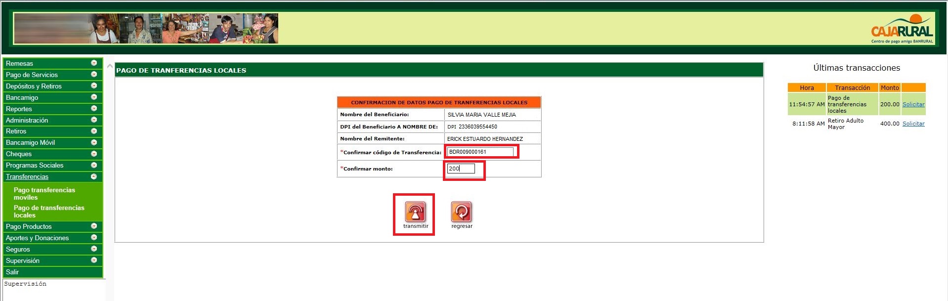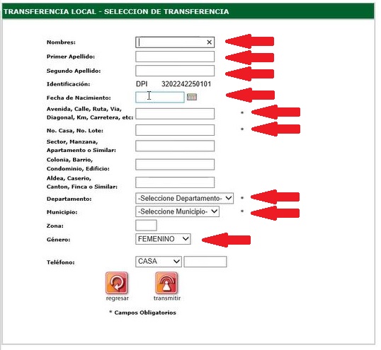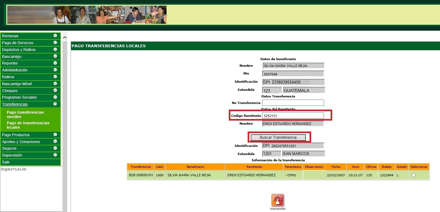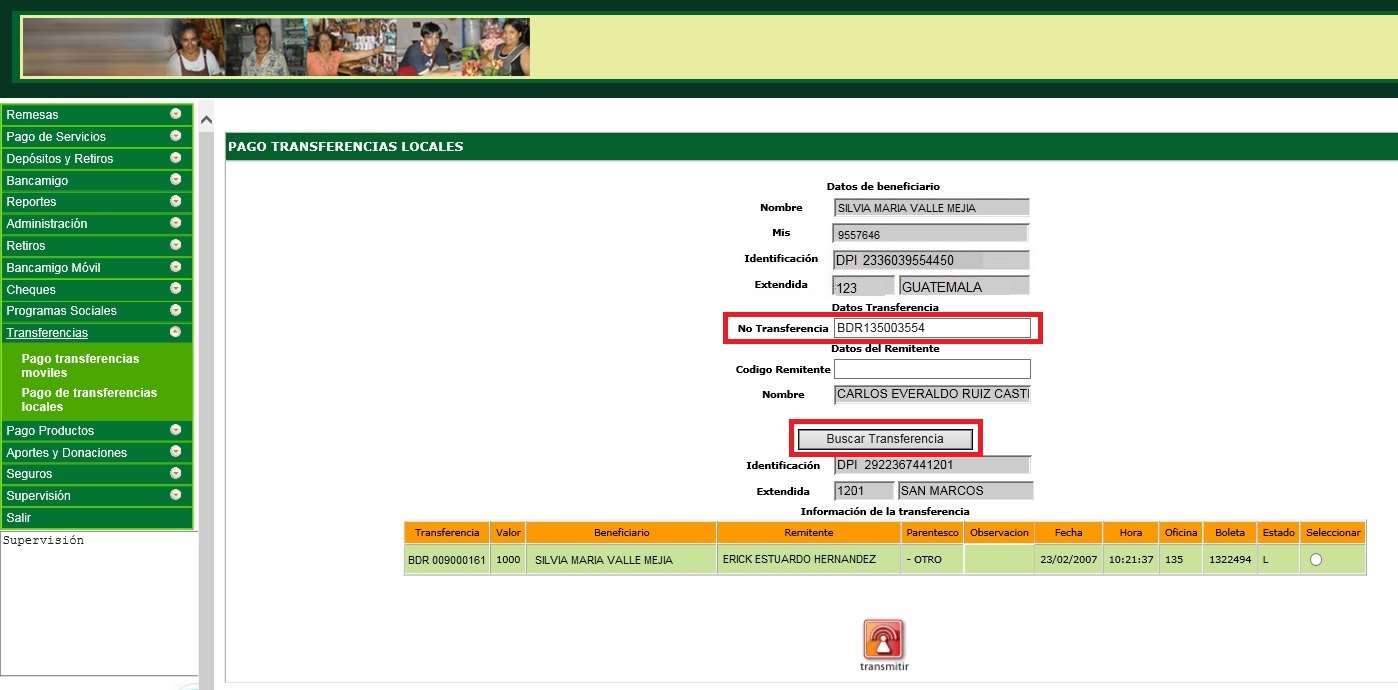 - Verifique que el DPI presentado, realmente pertenezca a la persona que se presenta a cobrar la Transferencia Local. Únicamente el beneficiario indicado en la información de la Transferencia Local puede solicitar el pago.
