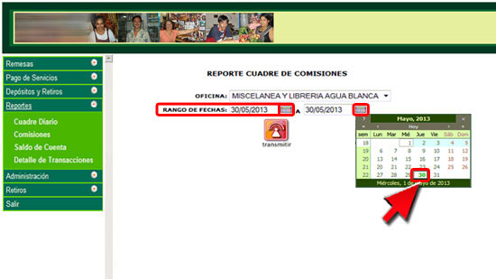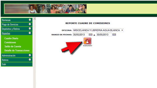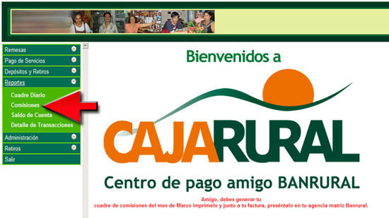 1. Seleccione el menú "Reportes" opción "Comisiones".
