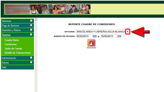 2. Seleccione la oficina que tiene asignada para realizar sus operaciones de Caja Rural.
