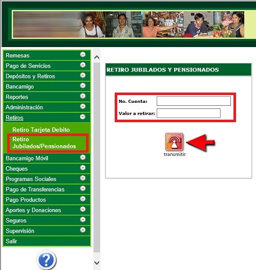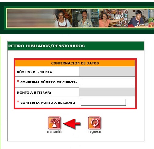3. Confirme los datos del cliente ingresando nuevamente el no. de cuenta y el monto que el cliente desea retirar. Luego presione “Transmitir”.