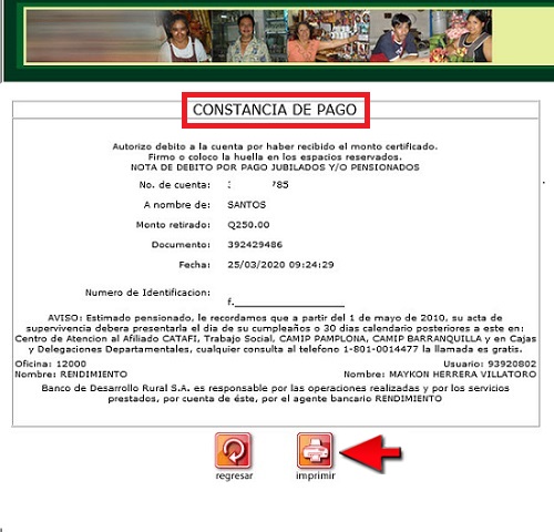 Si los datos de la cuenta no se encuentran a nombre del jubilado o pensionado, el sistema mostrará el siguiente mensaje, luego presione "Regresar para corregir los datos: