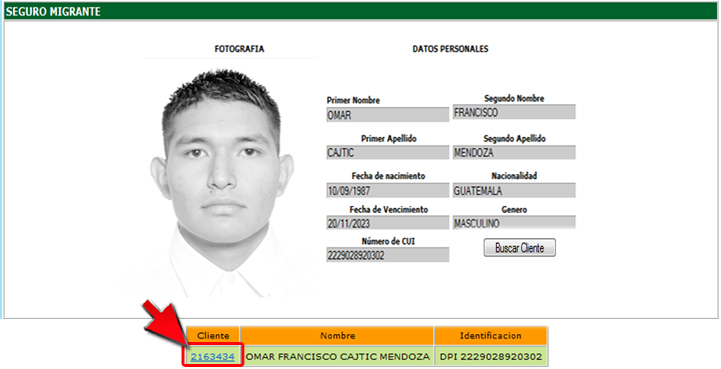 Ingrese el número de CUI, y presione el botón "Buscar Cliente".