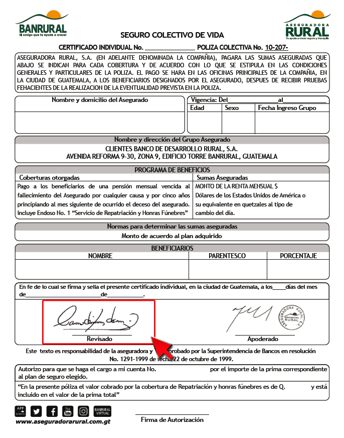 14. Se desplegará la póliza en formato PDF la cual deberá de imprimir en hojas papel bond, previo a su entrega el cliente deberá firmar la póliza.