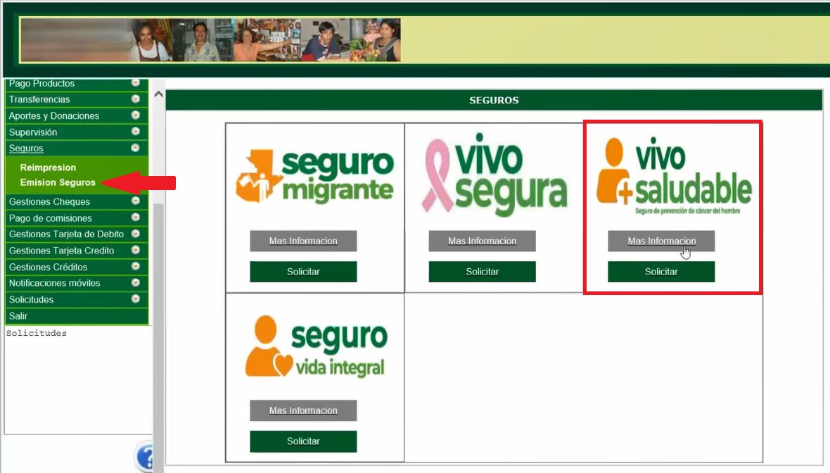 Pasos para realizar operaciones de Seguro Vivo Saludable