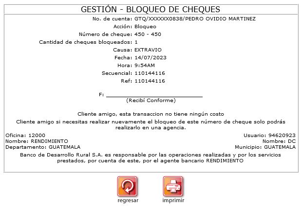 Gestiones de Cheques-Bloqueo de cheque en Caja Banrural