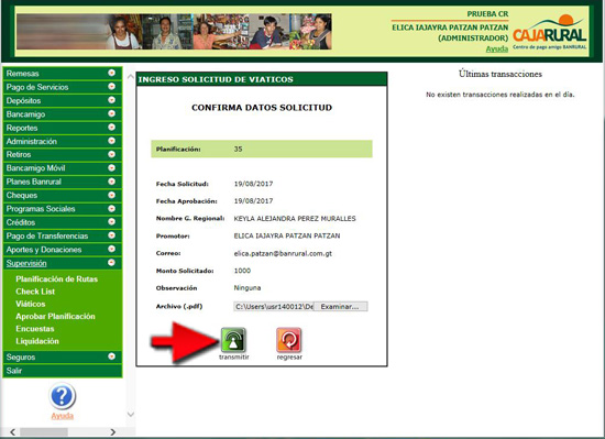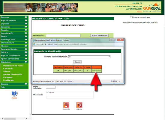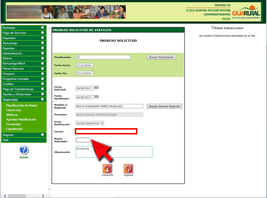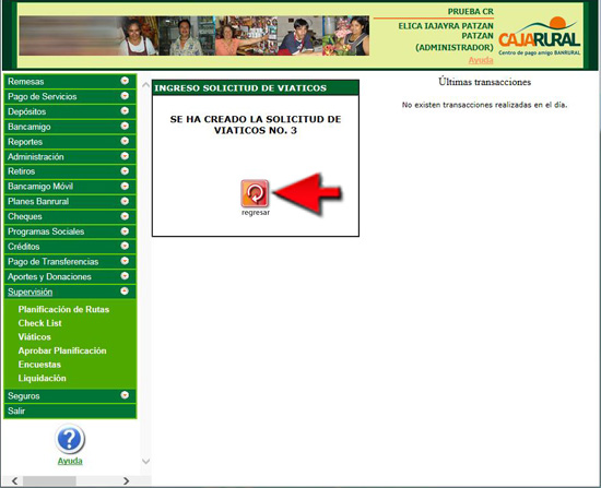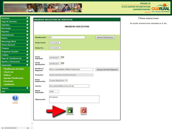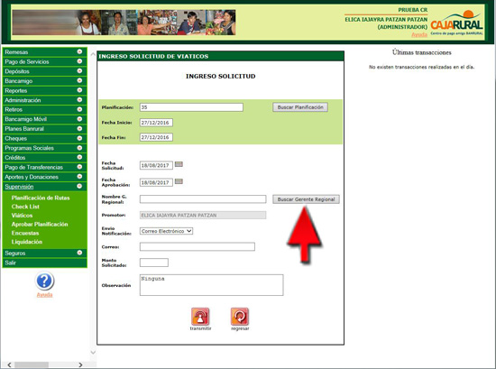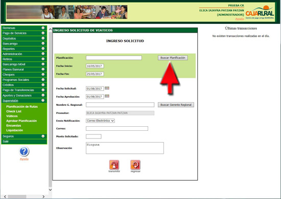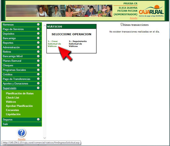 Procedimiento: Creación solicitud de viáticos para Promotores de Caja Rural.
