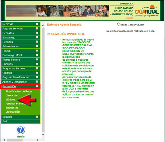 2. Ingresa al menú "Supervisión, opción "Viáticos".