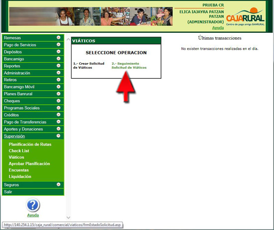 2. Ingresa al menú "Supervisión, opción "Viáticos".