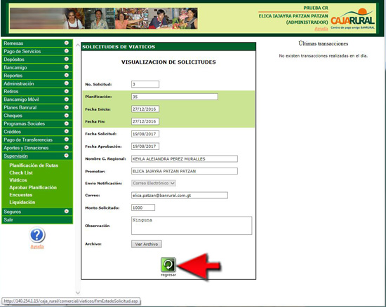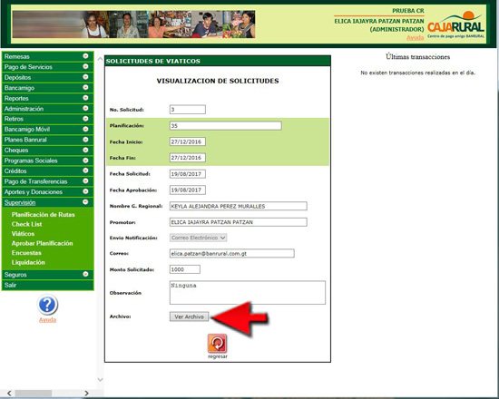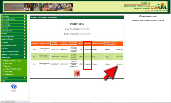 Procedimiento: Seguimiento a solicitud de viáticos para Promotores de Caja Rural. |